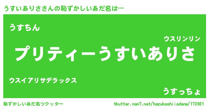 | ヒーロー風カッコイイあだ名 | 『スーパーウスイアリサ』『幻影騎士ウス』 |