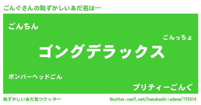 | ヘコむあだ名 | 『ごんぐ(苦笑)』『ごんにゅー』 |