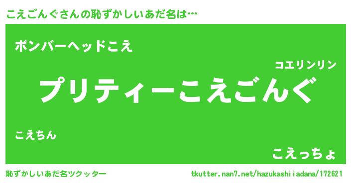 | 男性向けラノベタイトル風あだ名 | 『こえごんぐの憂鬱』『緋弾のコエゴング』 |