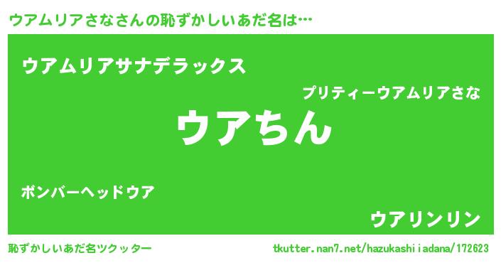 | 意味不明あだ名 | 『永久保存ウアムリアさな』 |