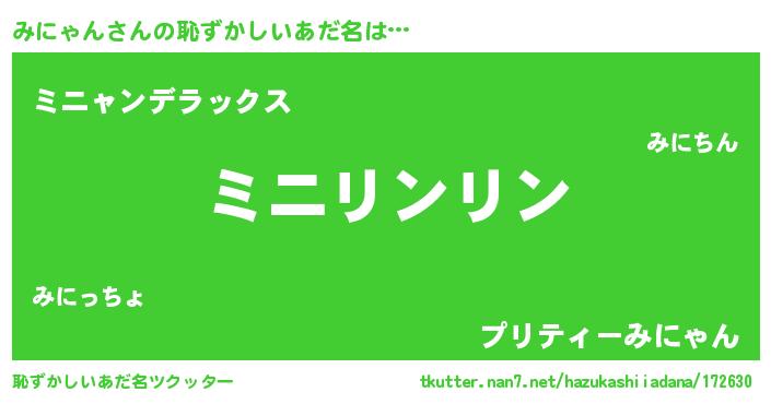 | 女子向けラノベタイトル風あだ名 | 『みにゃんは平凡を望む』『闇のみにゃん』 |