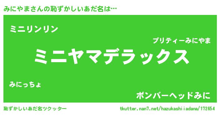 | 意味不明あだ名 | 『自称みにやま』『ペロリンみにやま』 |