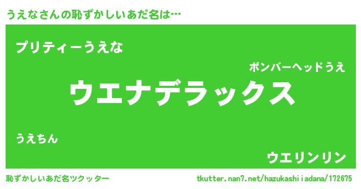 | 欧米人風あだ名 | 『ケンブリッジうえな』『マイケルうえな』 |