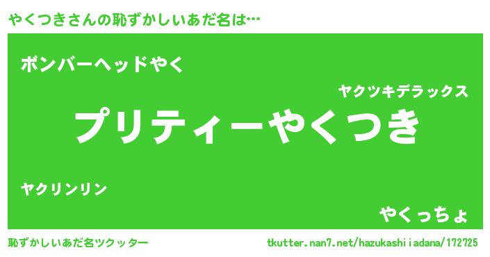| ヒーロー風カッコイイあだ名 | 『スーパーヤクツキ』『仮面ヤクダー』 |