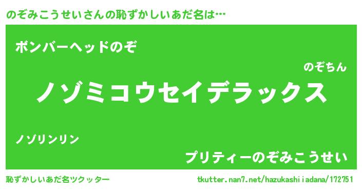 | 意味不明あだ名 | 『自称のぞみこうせい』 |