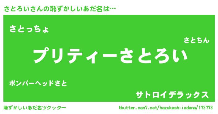 | 胡散臭い通販商品みたいなあだ名 | 『必ず成功するブレスレット…その名も「さとろい」』 |