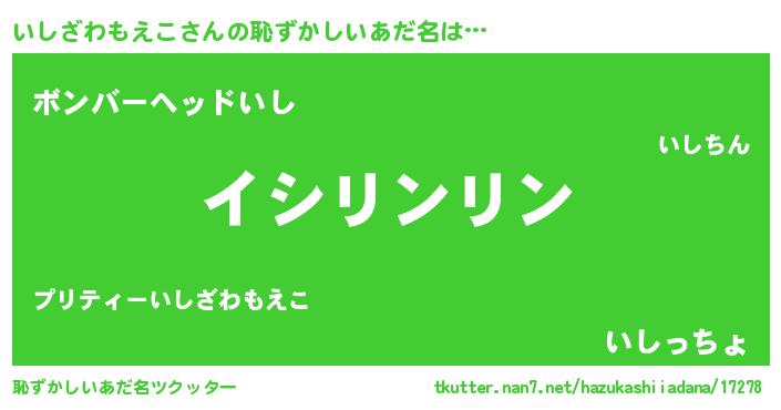 | 意味不明あだ名 | 『とにかく怪しいいしざわもえこ』 |