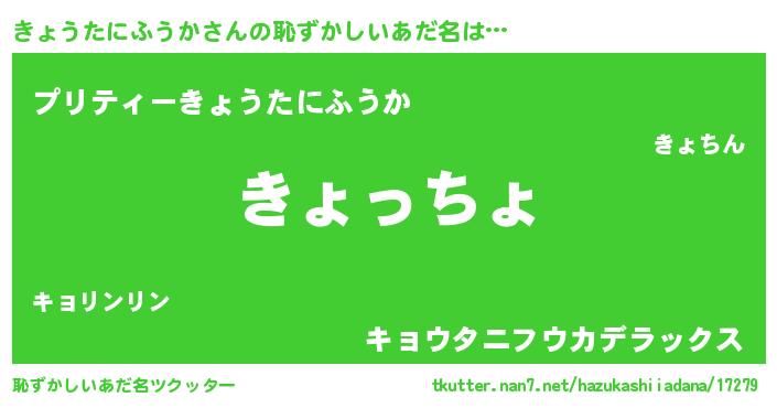 | 意味不明あだ名 | 『きょうたにふうかフォーエバー』 |