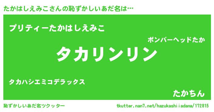 | 意味不明あだ名 | 『とにかく怪しいたかはしえみこ』 |
