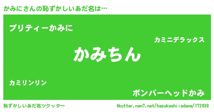 | 意味不明あだ名 | 『永久保存かみに』『ペロリンかみに』 |