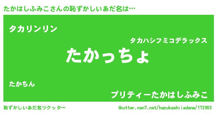 | ポケモン風あだ名 | 『タカハダネ』『ヒタカハシフミコ』 |