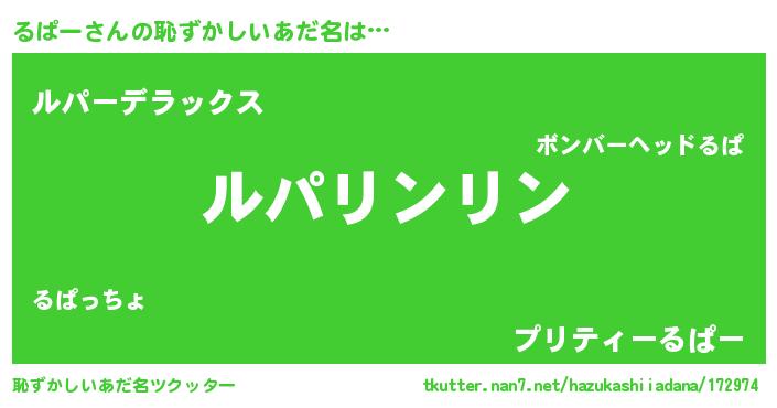 | ヘコむあだ名 | 『るぱ太郎』『るぱにー』『牛乳』 |