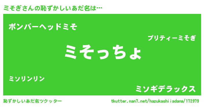 | ヒーロー風カッコイイあだ名 | 『ウルトラミそぎマン』『愛の使者ミそぎ』 |