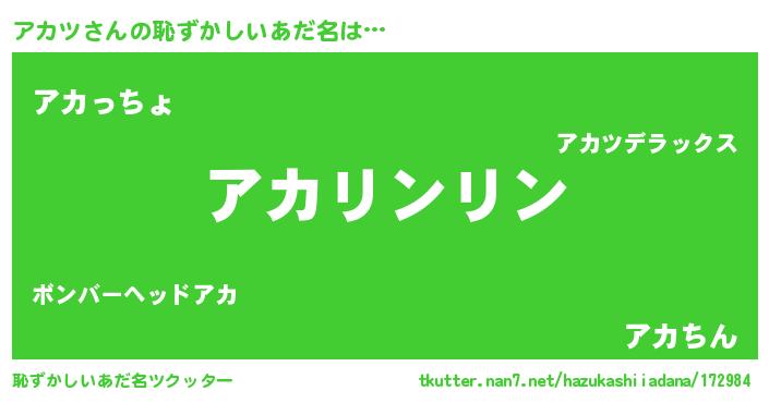 | 意味不明あだ名 | 『とにかく怪しいアカツ』『自称アカツ』 |
