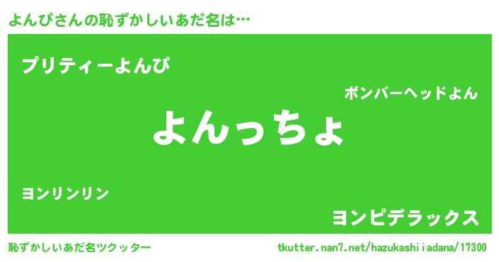 | 意味不明あだ名 | 『たけのこ科よんぴ属』『ペロリンよんぴ』 |