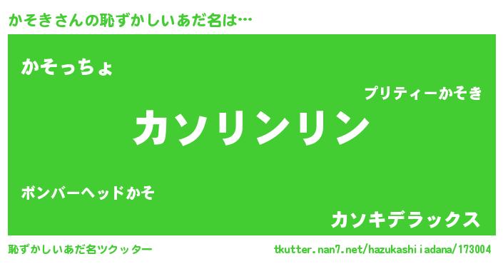 | ヘコむあだ名 | 『かそを』『なまこ酢』『かそもー』 |