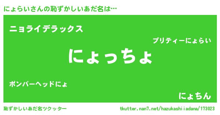 | ヒーロー風カッコイイあだ名 | 『ウルトラにょらいマン』『ネオニョライ』 |