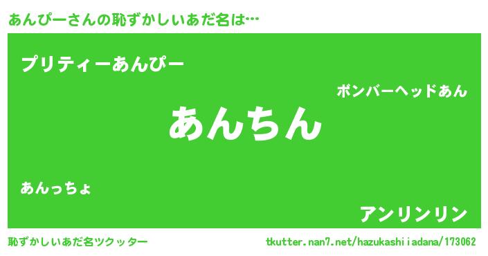 | 意味不明あだ名 | 『永久保存あんぴー』『ペロリンあんぴー』 |