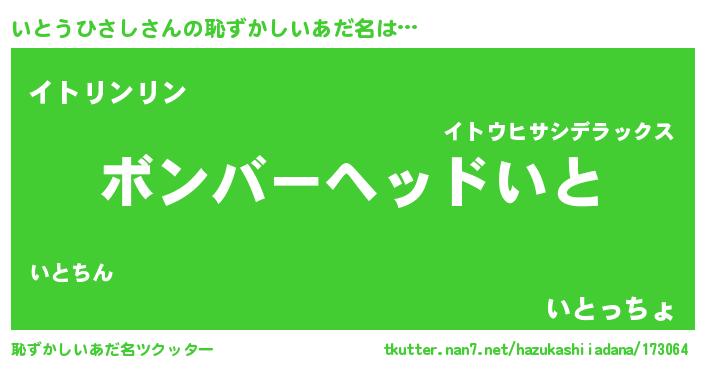 | 男性向けラノベタイトル風あだ名 | 『転生したらいとうひさしだった件』 |