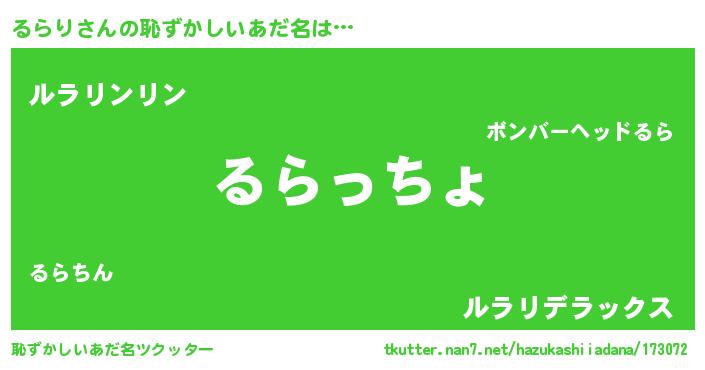 | ヘコむあだ名 | 『豆乳』『るらを』『るらり(笑)』 |