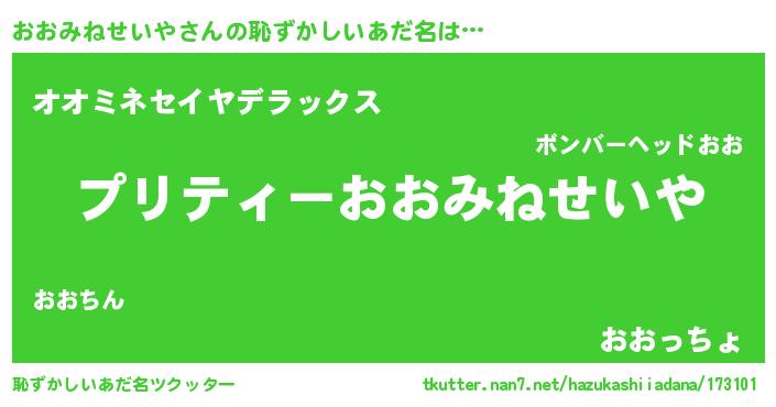 | 胡散臭い通販商品みたいなあだ名 | 『億万長者になれる霊験あらたかなお札…その名も「おおみねせいや」』 |