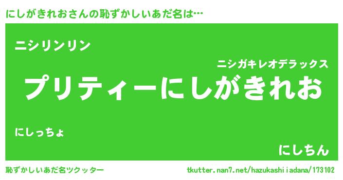 | 意味不明あだ名 | 『住所不定無職にしがきれお(74歳)』 |