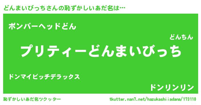 | 欧米人風あだ名 | 『アンジェラ・どんまいびっち』 |