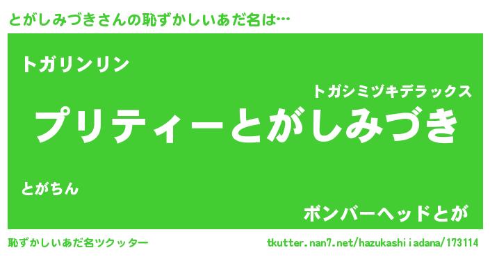 | 意味不明あだ名 | 『住所不定無職とがしみづき(7歳)』 |