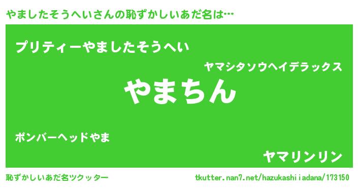 | 意味不明あだ名 | 『住所不定無職やましたそうへい(2歳)』 |