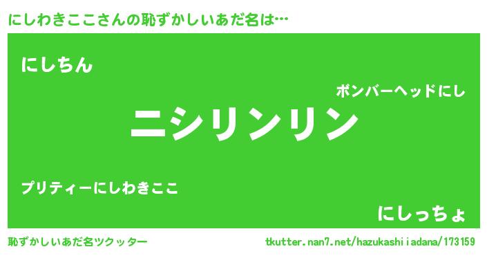 | ヘコむあだ名 | 『にしっちょ』『にしわきここ(笑)』 |