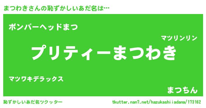 | ヘコむあだ名 | 『まつっふぃ~』『まつわき(笑)』 |