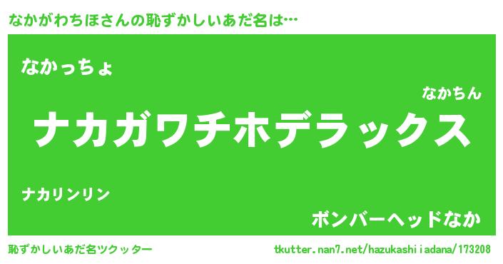 | ヒーロー風カッコイイあだ名 | 『最強戦士ナカガワチホ』『仮面ナカダー』 |
