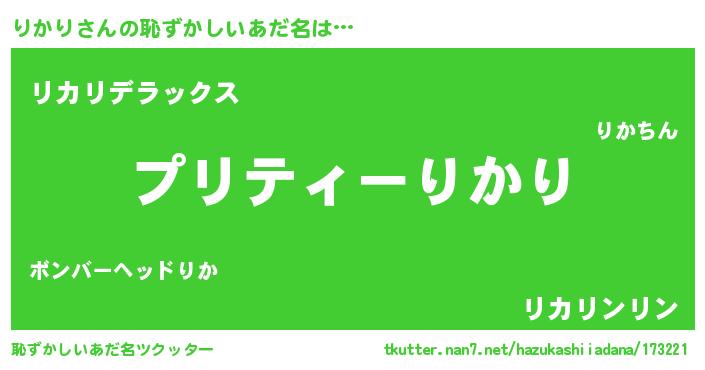| 欧米人風あだ名 | 『りかり・ステッグマイヤー』 |