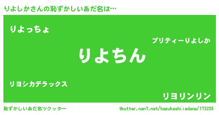 | 欧米人風あだ名 | 『りよしか・ステッグマイヤー』 |