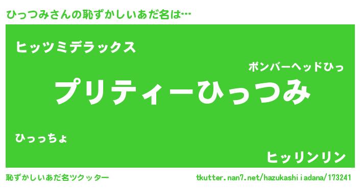 | ヒーロー風カッコイイあだ名 | 『スーパーヒッツミ』『究極戦士ヒッツミ』 |