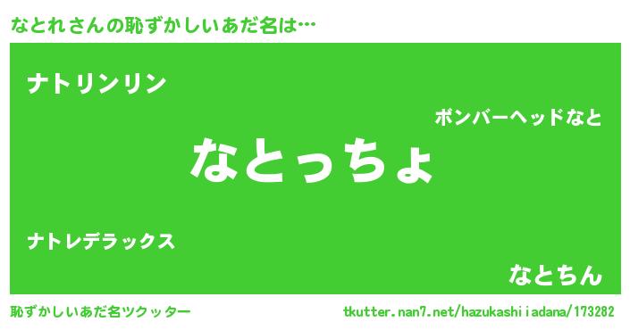 | 意味不明あだ名 | 『めかぶ科なとれ属』『永久保存なとれ』 |