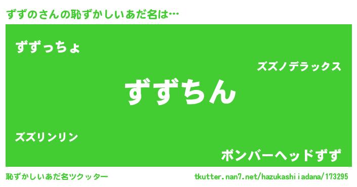 | ヒーロー風カッコイイあだ名 | 『ネオズズノ』『ウルトラずずのマン』 |