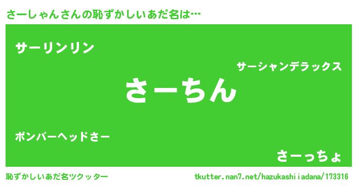 | ヘコむあだ名 | 『さーしゃん(小並感)』『さーっぺ』 |