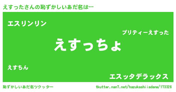 | 欧米人風あだ名 | 『えすったクリステル』 |