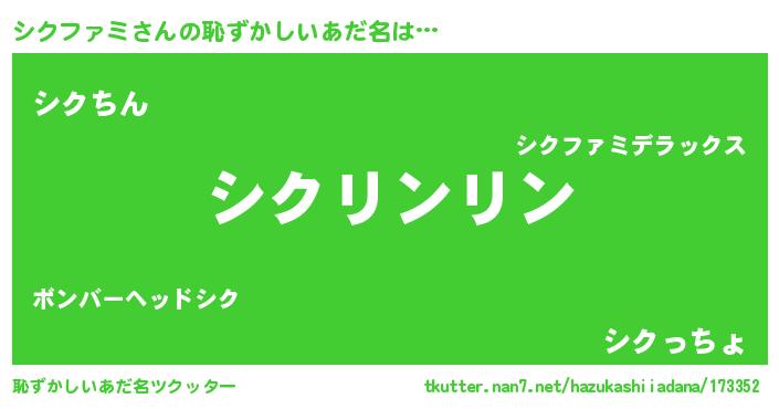 | ヘコむあだ名 | 『シクぷりん』『シクファミ(笑)』 |