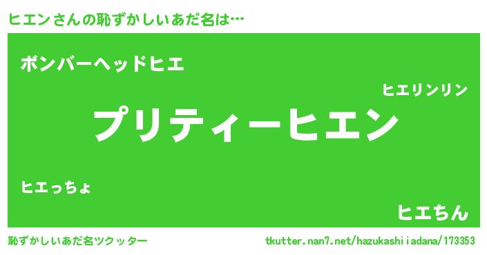| ヘコむあだ名 | 『ヒエふぇ~』『ヒエン(小並感)』 |
