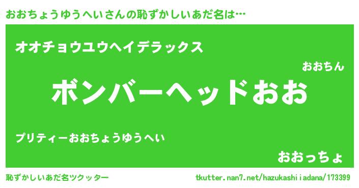 | 男性向けラノベタイトル風あだ名 | 『オオチョウユウヘイスレイヤー』 |
