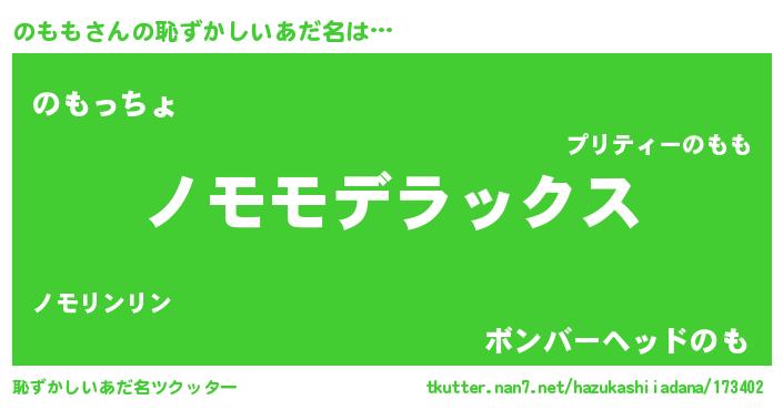 | 男性向けラノベタイトル風あだ名 | 『Re:のももから始める異世界生活』 |