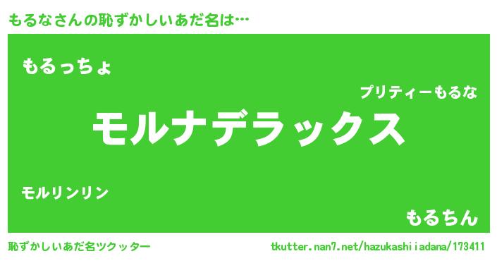 | 男性向けラノベタイトル風あだ名 | 『転生したらもるなだった件』 |