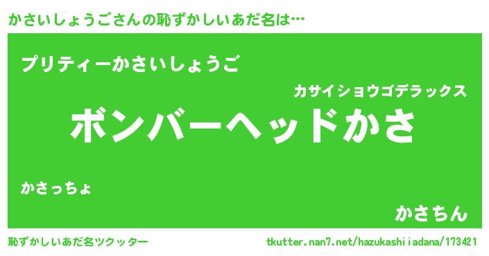 | ヘコむあだ名 | 『かさっふぃ~』『かさいしょうご(笑)』 |