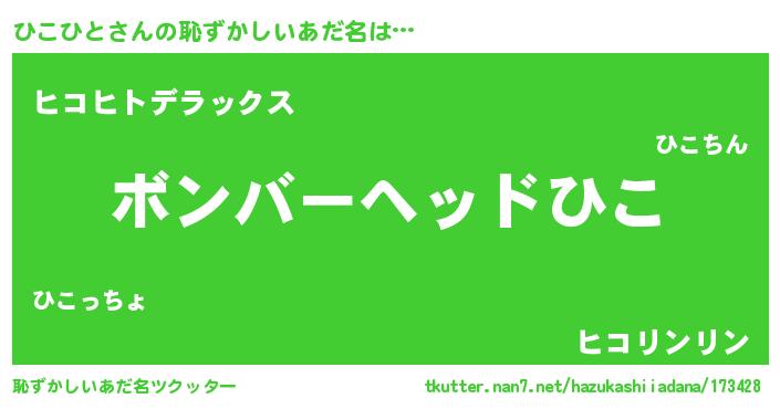 | ヒーロー風カッコイイあだ名 | 『愛の使者ひこひと』『最強戦士ヒコヒト』 |