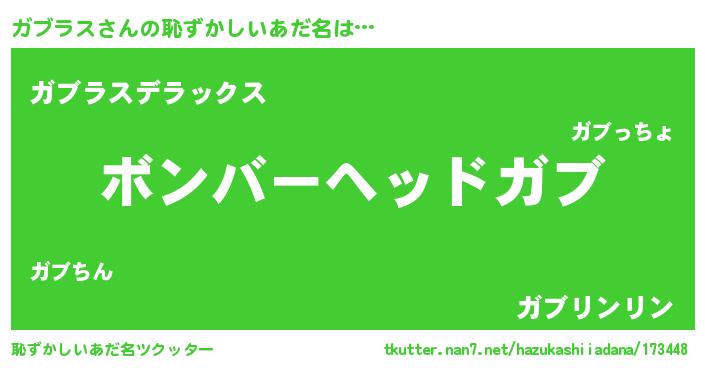 | 男性向けラノベタイトル風あだ名 | 『この素晴らしい世界にガブラスを!』 |