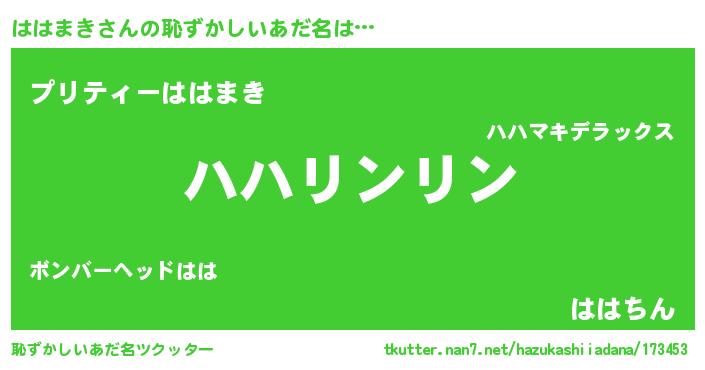 | 意味不明あだ名 | 『とにかく怪しいははまき』 |