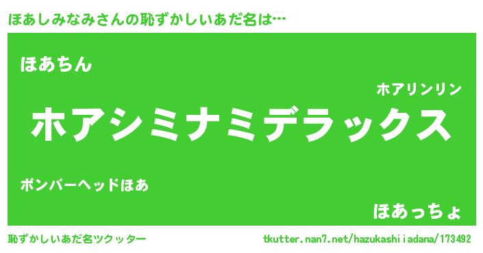 | ヘコむあだ名 | 『ほあしみなみ(笑)』『レバニラ』 |