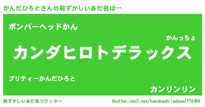 | 男性向けラノベタイトル風あだ名 | 『Re:かんだひろとから始める異世界生活』 |
